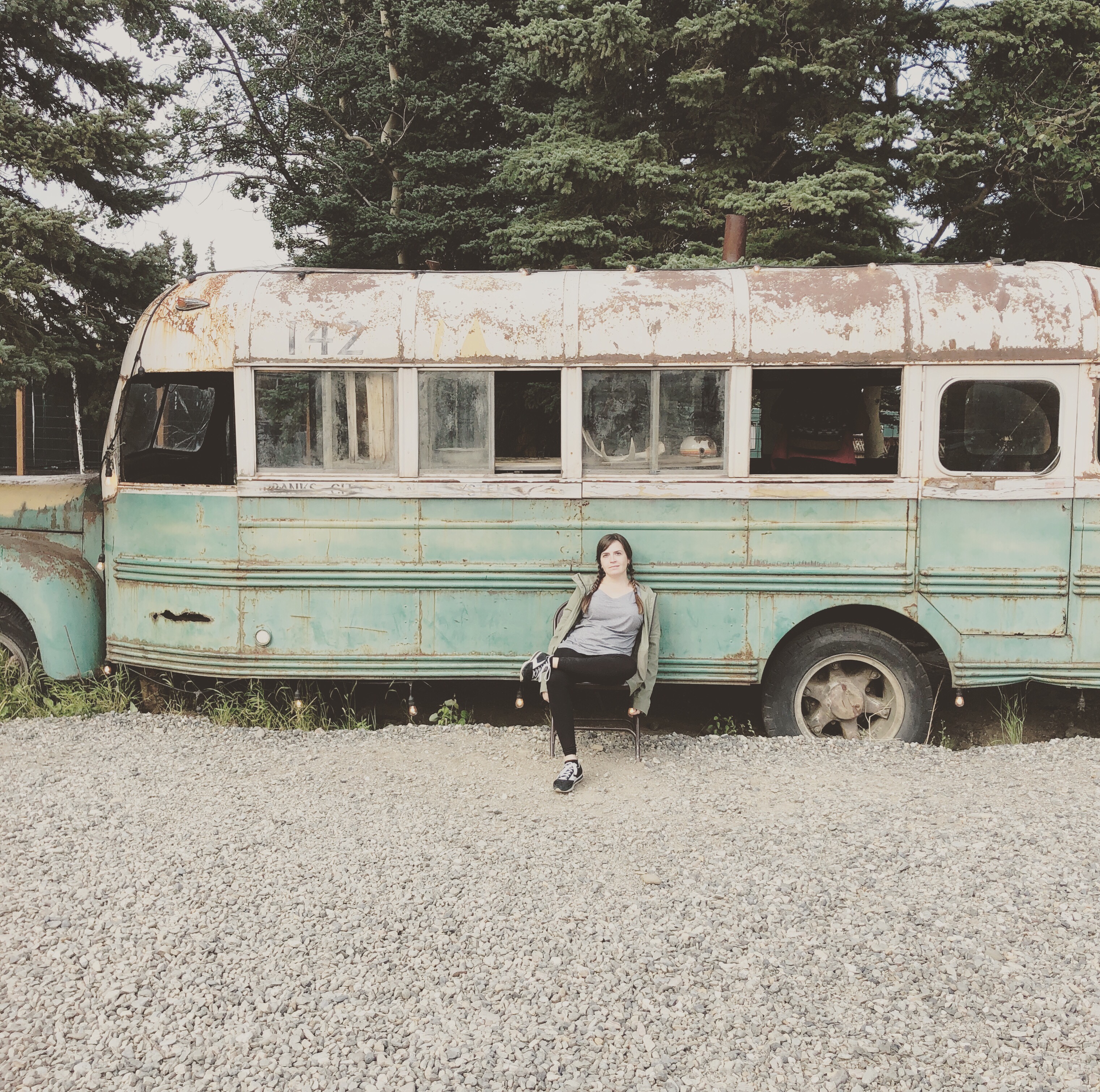 - Dinner at 49th State Brewery. Ate smoked salmon chowder and the halibut. Took some photos with the bus used to film Into the Wild.
